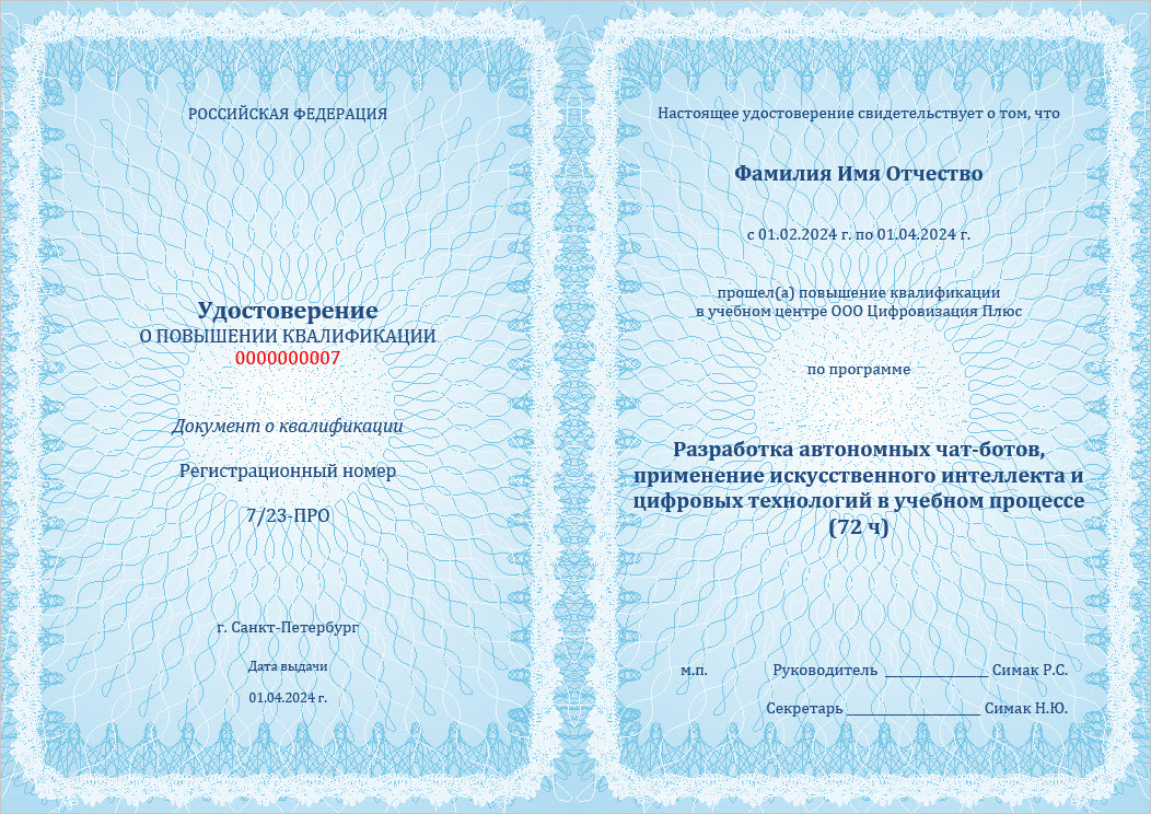 Курс предназначен для руководителей и профессорско-преподавательского состава вузов. В рамках курса изучается процесс создания автономных чат-ботов, использование искусственного интеллекта, а также авторских цифровых инструментов по работе с нейронными сетями (программа Ассистент) и организации учебного процесса (АРМ Преподаватель, генератор экзаменационных билетов и т.д.)