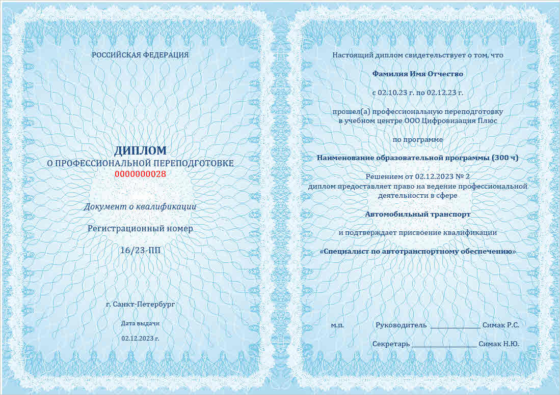 Программа профессиональной переподготовки разработана с учетом требований Федерального государственного образовательного стандарта и включает изучение широкого спектра специальных дисциплин, и направлена на получение компетенций, необходимых для выполнения нового вида профессиональной деятельности. По завершении обучения специалисты получают диплом установленного образца.
